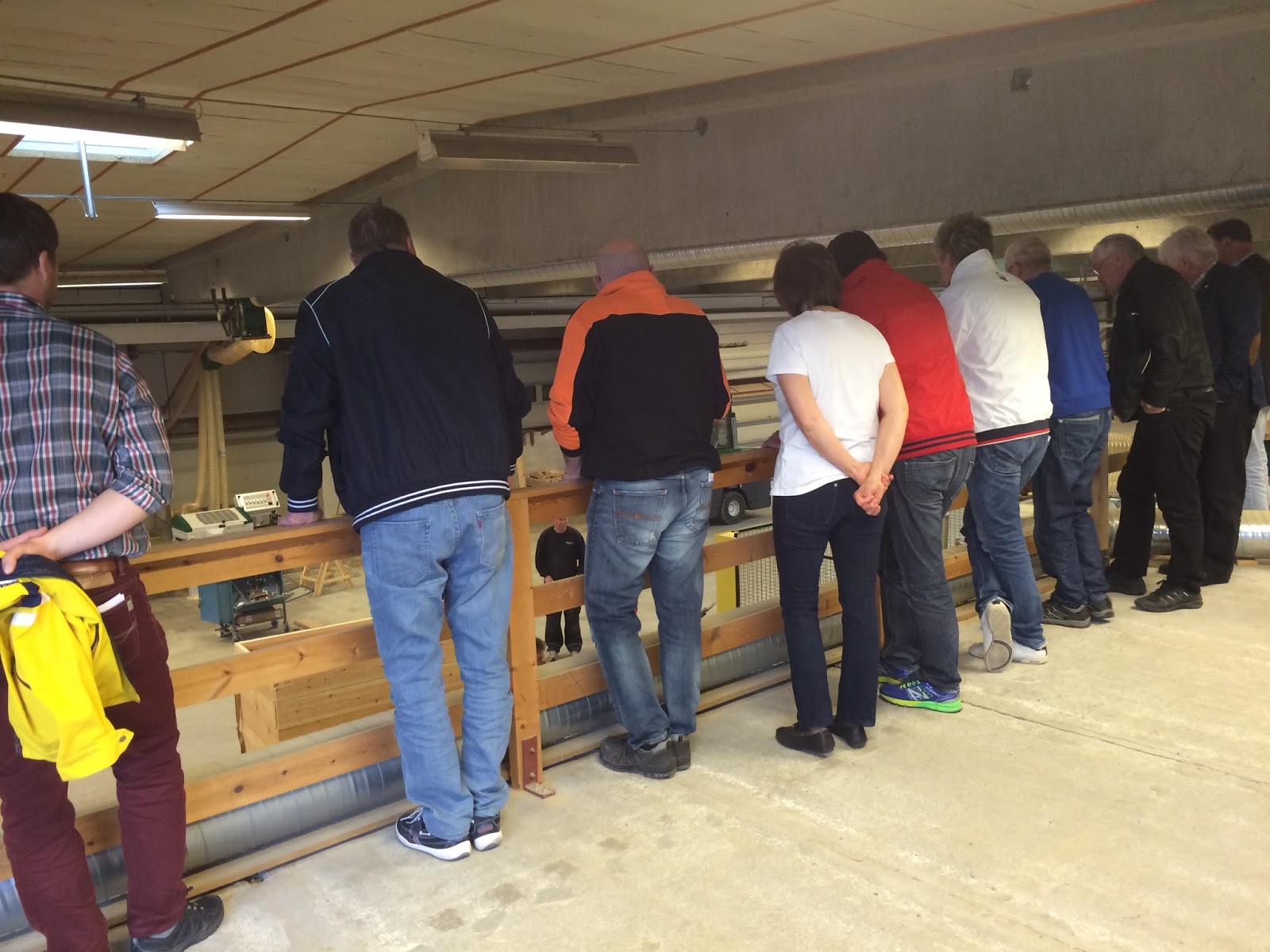 Vi kunde se maskinhallen från fabrikens läktare. |